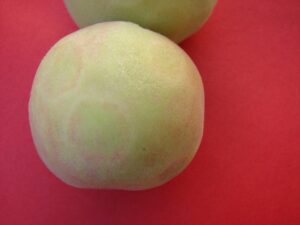 Őszibarack héján is gyűrű alakú rajzolatot okoz a fertőzés (Dr. Némethy felvétele)